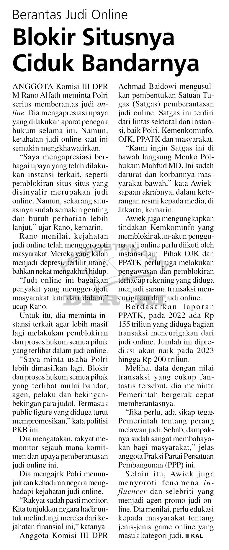 Judi Online, M Rano Alfath, Achmad Baidowi