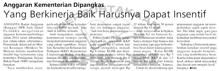 | Judul | Anggaran Kementerian dipangkas, yang berkinerja baik harusnya dapat insentif |