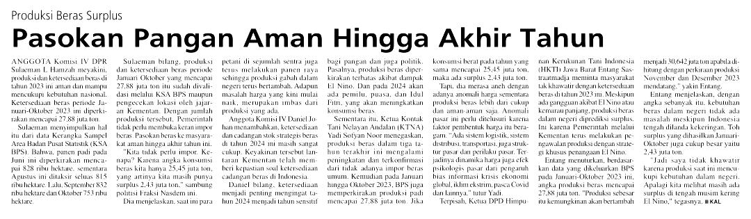 | Judul | Produksi Beras Surplus: Pasokan Pangan Aman Hingga Akhir Tahun |