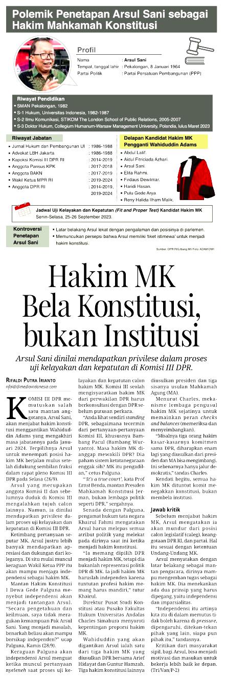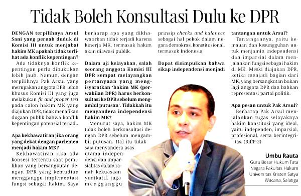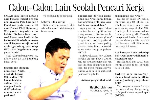 | Judul | Hakim MK Bela konstitusi, bukan institusi |