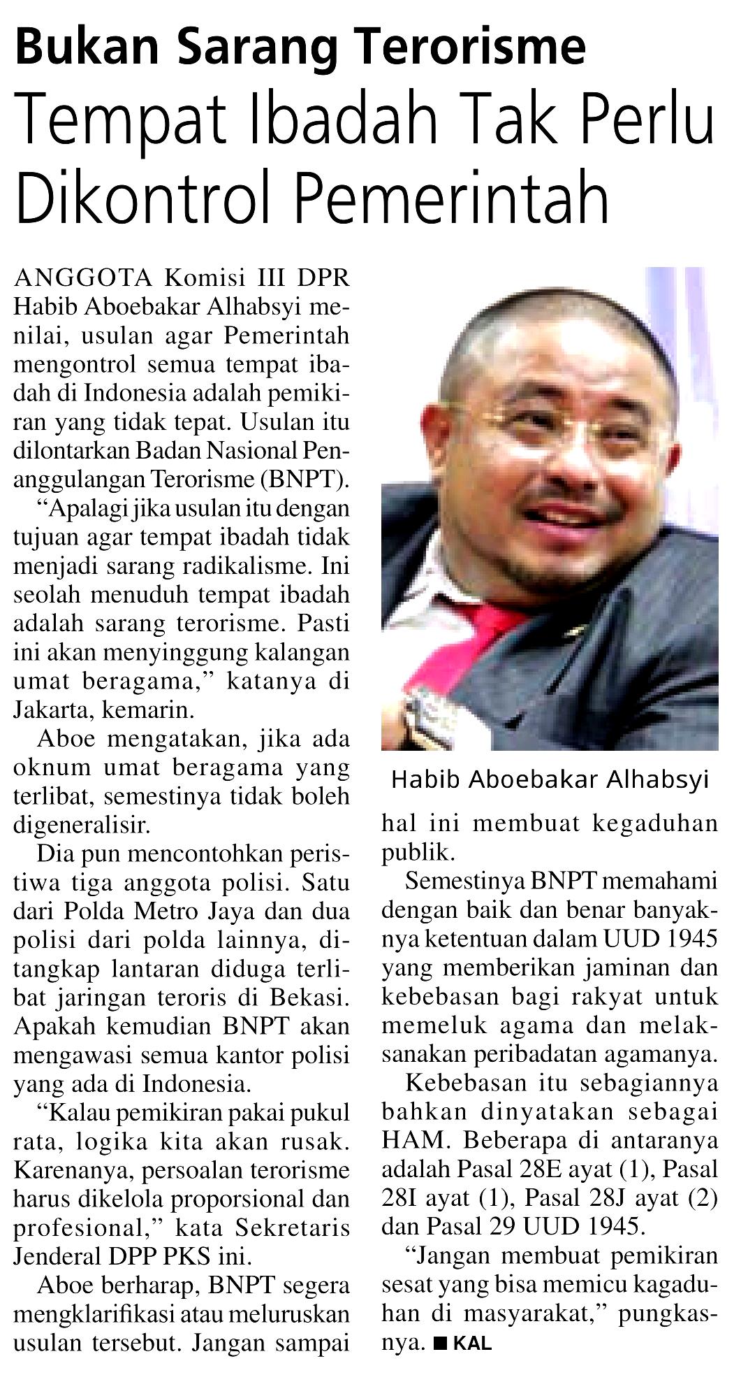 | Judul | Tempat Ibadah Tak Perlu Dikontrol Pemerintah: Bukan Sarang Terorisme |