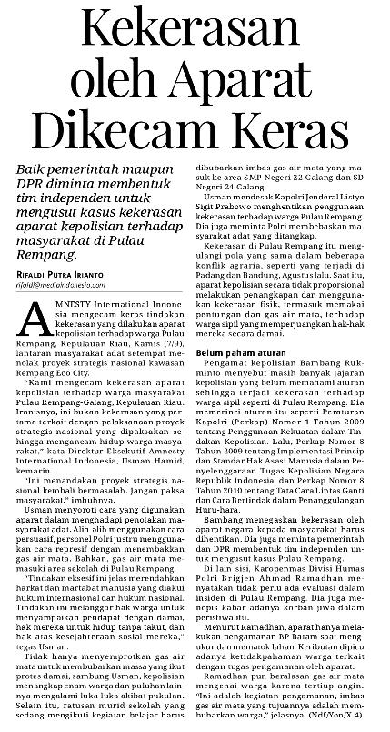 kekerasan, aparat kepolisian, polril, Pulau Rempang