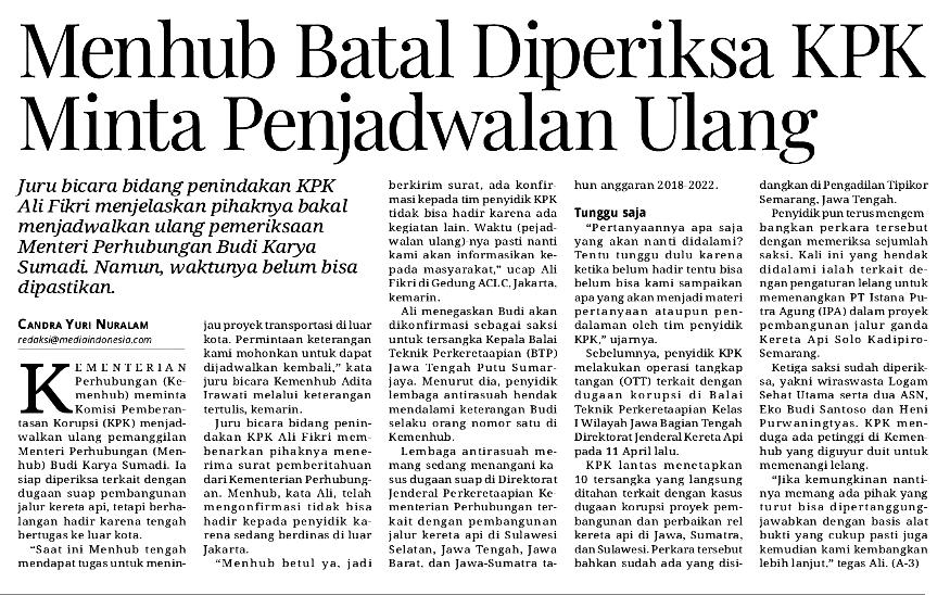 | Judul | Menhub batal diperiksa KPK minta penjadwalan ulang |