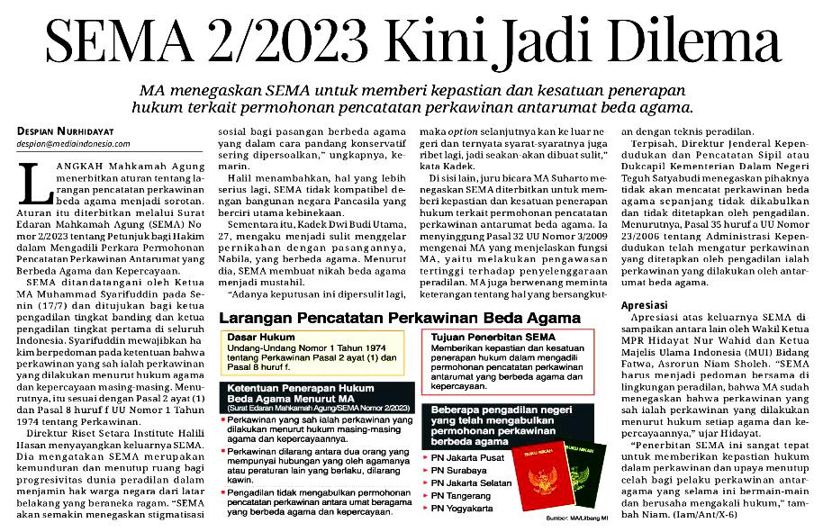 Surat Edaran MA (SEMA), perkawinan (beda agama)