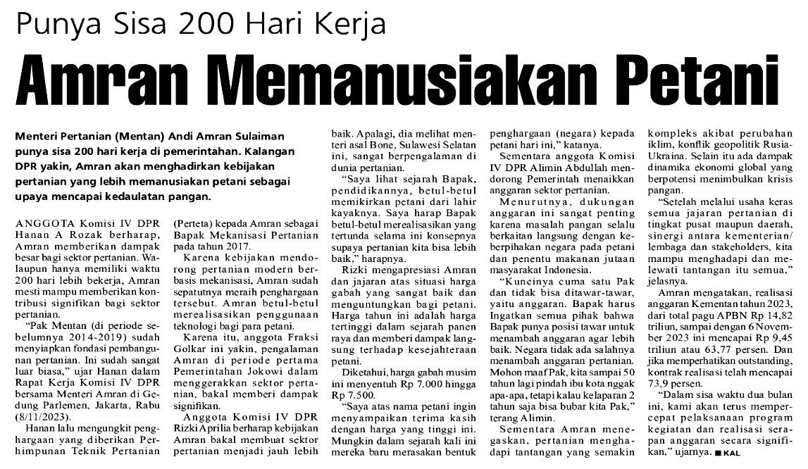 | Judul | Punya sisa 200 hari Kerja, Amran Memanusiakan Petani |