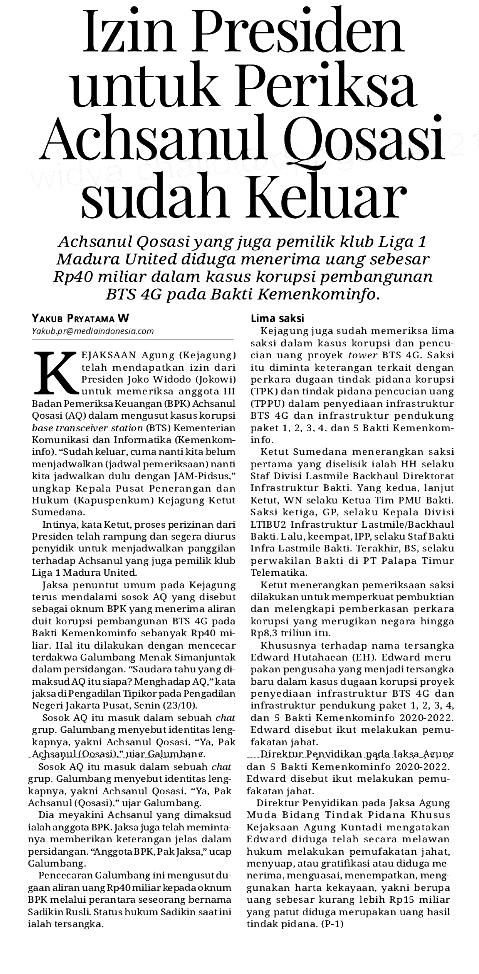 Izin presiden untuk periksa Achsanul Qosasi sudah keluar