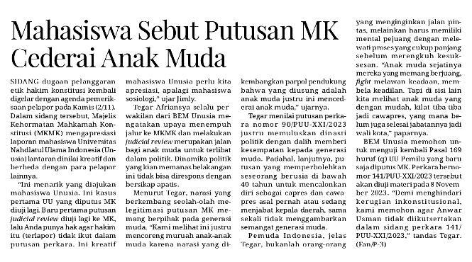 | Judul | Mahasiswa sebut putusan MK cederai anak muda |