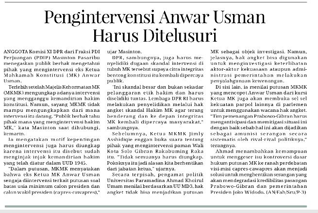 | Judul | Pengintervensi Anwar Usman harus dielusuri |