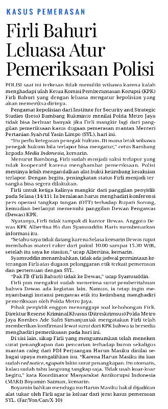 | Judul | Firli Bahuri leluasa atur pemeriksaan polisi |