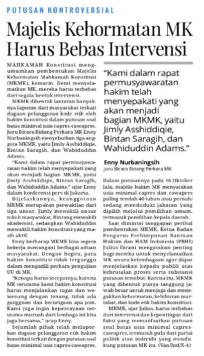 Majelis kehormatan MK harus bebas intervensi