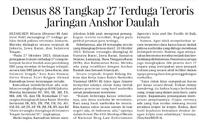| Judul | Densus 88 tangkap 27 terduga teroris jaringn anshor daulah |