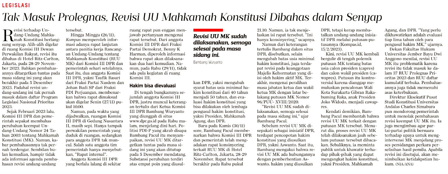 | Kata Kunci | Revisi UU Mahkamah Konstitusi, Hotel Ritz-Carlton, 28-29 November 2023, Johan Budi SP, Nasdem, Program Legislasi Nasional Prioritas 2023, Bambang Wuryanto |