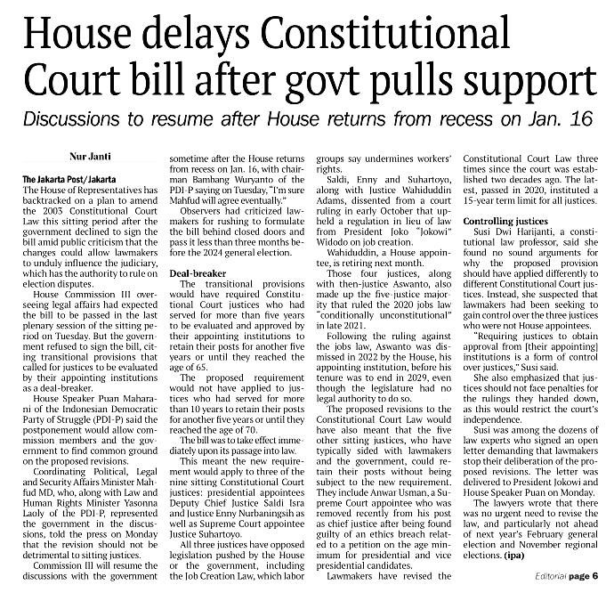 | Judul | House delays constitutional court bill after govt pulls support |