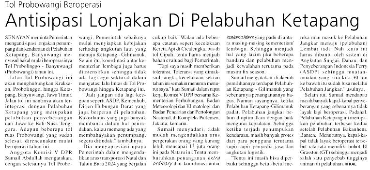 | Judul | Tol Probowangi beroperasi, antisipasi lonjakan di Pelabuhan Ketapang |