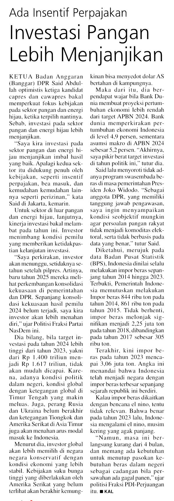 Said Abdullah ; Pangan ; Investasi ; Pajak dan Perpajakan
