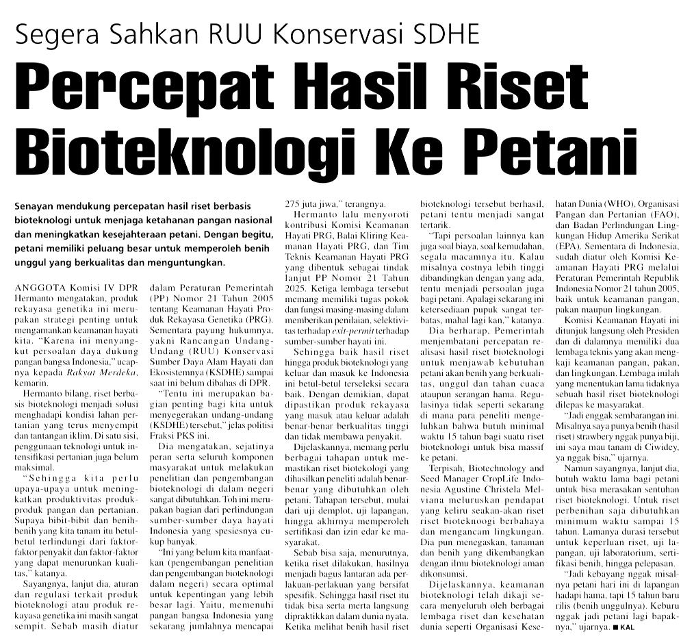 | Judul | Percepat Hasil Riset Bioteknologi ke Petani |