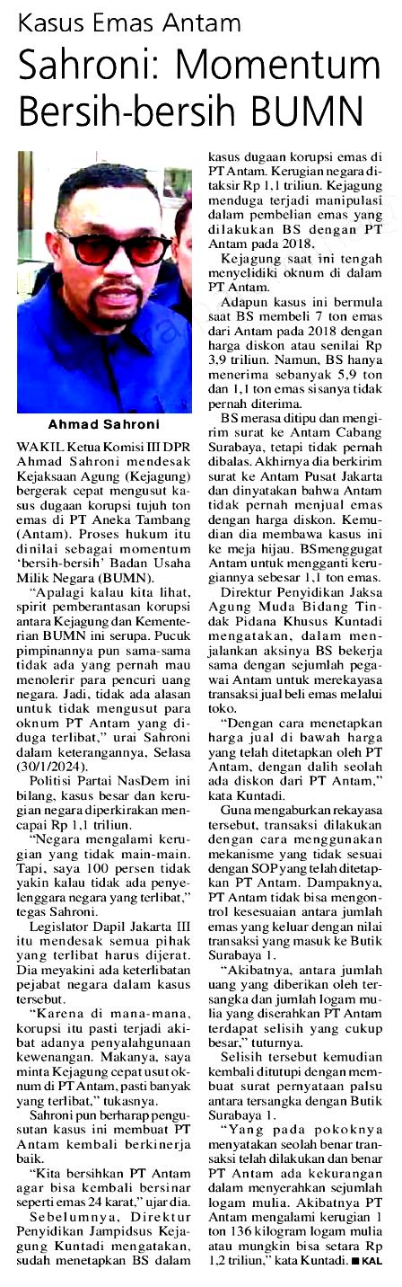 | Judul | Kasus Emas Antam - Sahroni: Momentum Bersih-bersih BUMN |