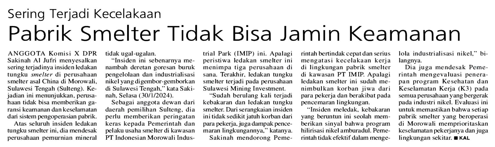 | Judul | Sering Terjadi Kecelakaan - Pabrik Smelter Tidak Bisa Jamin Keamanan |