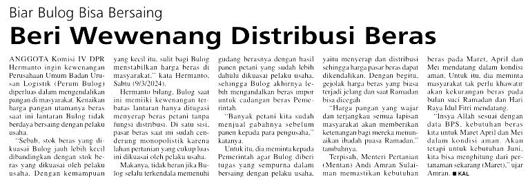 | Judul | Biar bulog bisa bersaing, beri wewenang distribusi beras |
