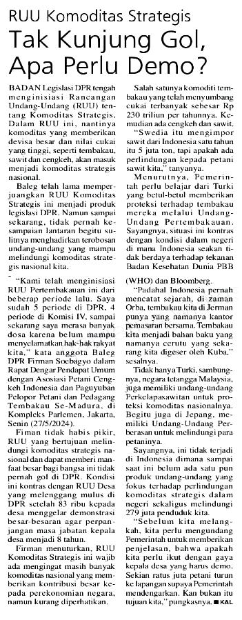 | Judul | RUU Komoditas strategis, tak kunjung gol, apa perlu demo? |