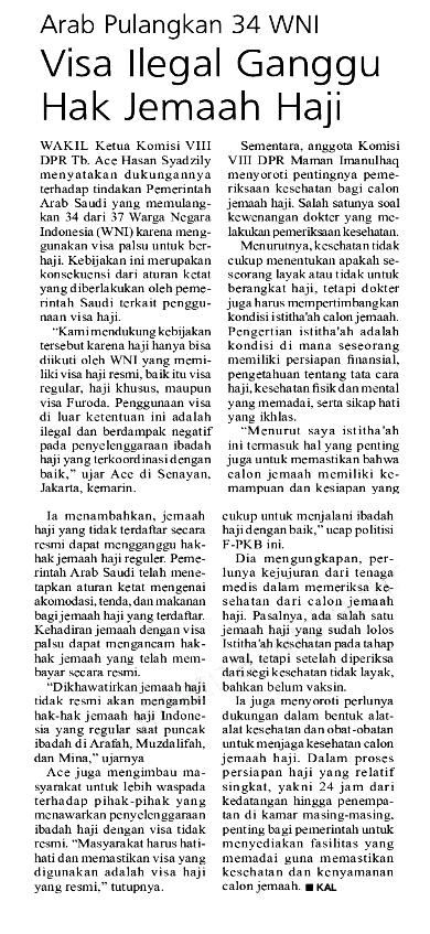 | Judul | Visa ilegal ganggu hak jemaah haji |