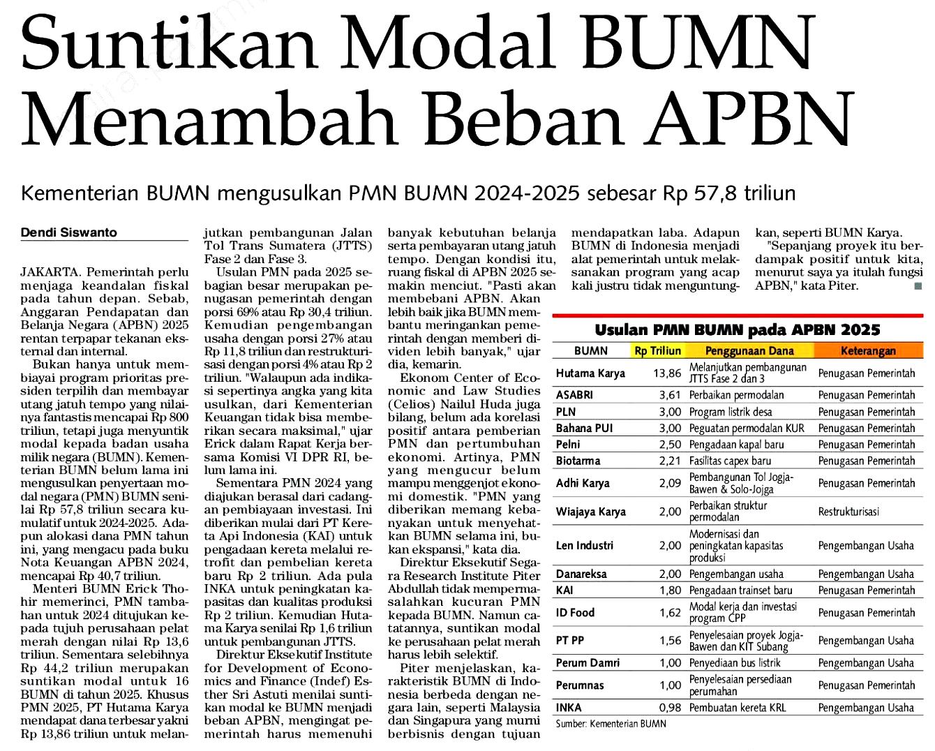 | Judul | Suntikan Modal BUMN Menambah Beban APBN |