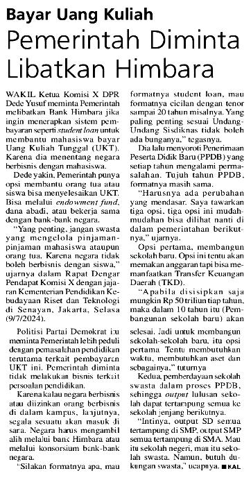 | Judul | Bayar uang kuliah, pemerintah diminta libarkan himbara |