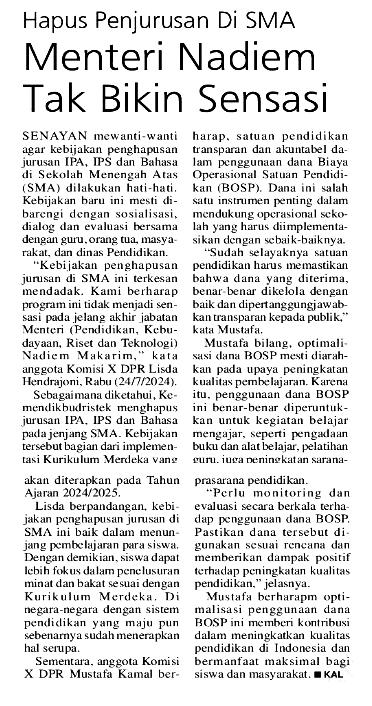 | Judul | Hapus penjurusan di SMA, Menteri Nadiem tak bikin sensasi |