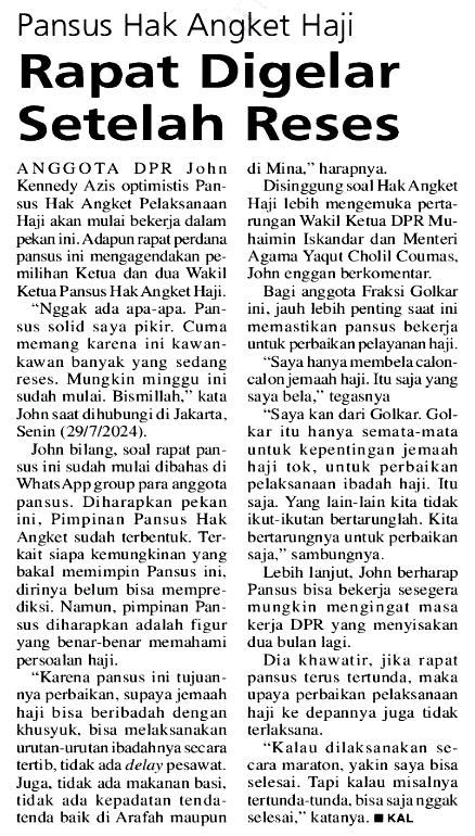 | Judul | Pansus Hak Angket Haji: Rapat Digelar setelah Reses |