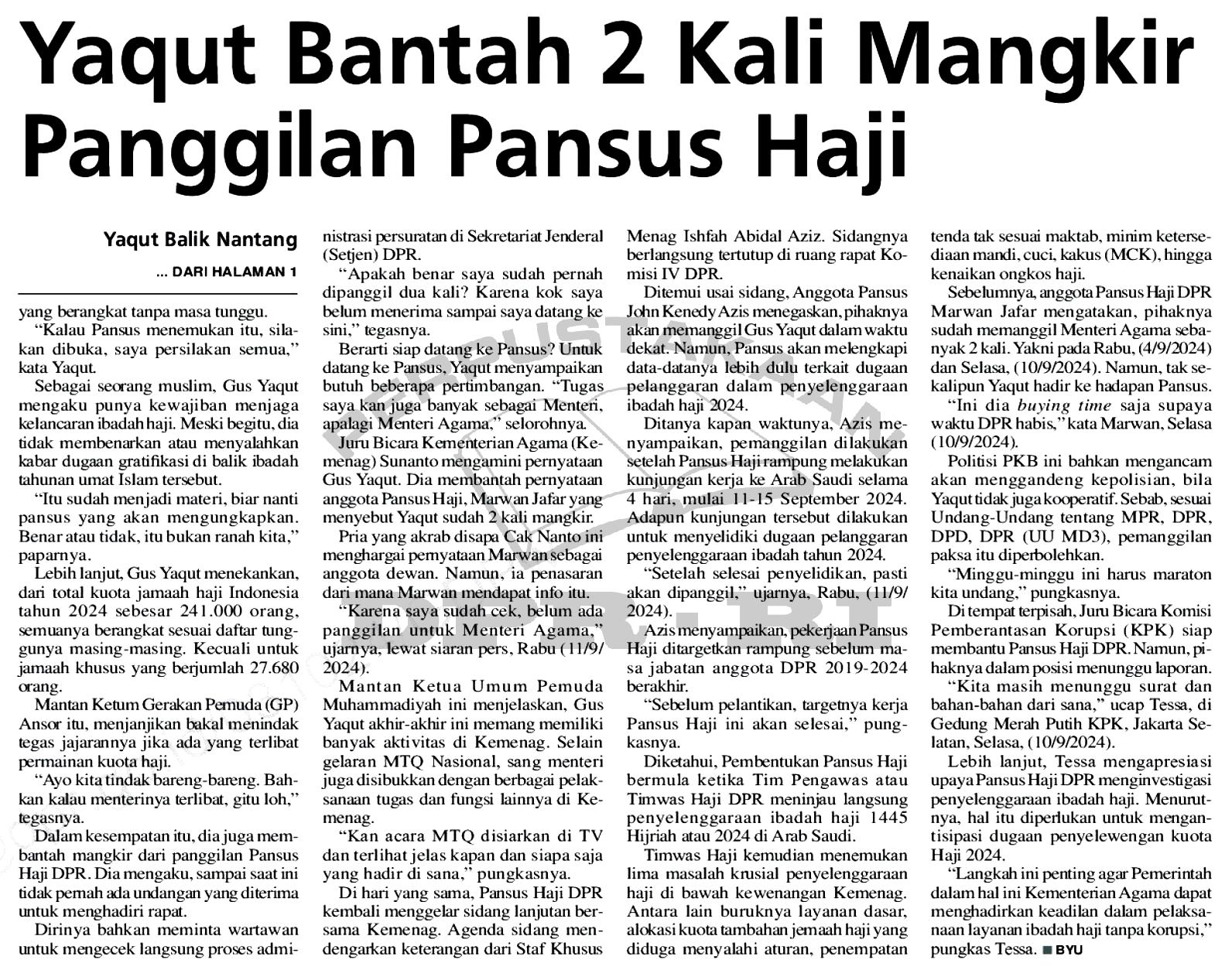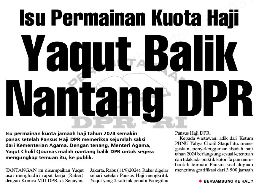 | Judul | Isu Permainan Kuota Haji: Yaqut Balik Nantang DPR |