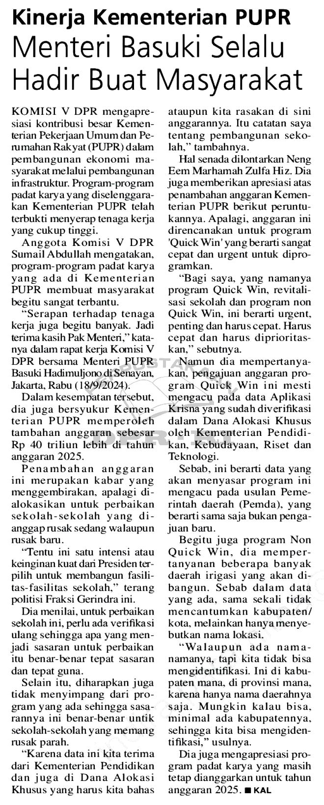 | Judul | Kinerja Kementerian PUPR; Menteri Basuki Selalu Hadir Buat Masyarakat |