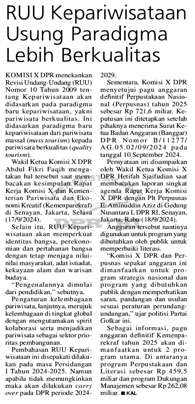 | Judul | RUU Kepariwisataan Usung Paradigma Lebih Berkualitas |