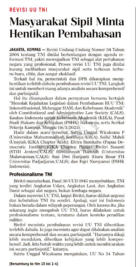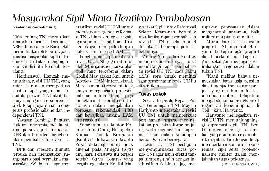 Masyarakat Sipil Minta Hentikan Pembahasan