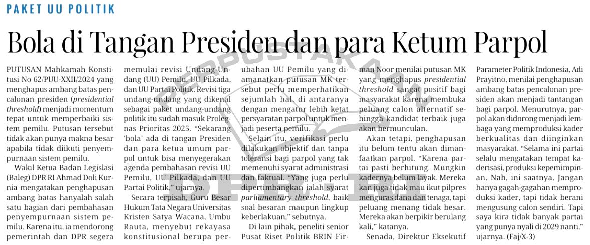 | Judul | Paket UU Politik - Bola di Tangan Presiden dan para Ketum Parpol |