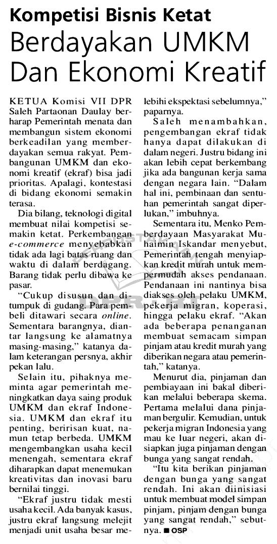 | Judul | Kompetisi Bisnis Ketat : Berdayakan UMKM dan Ekonomi Kreatif |