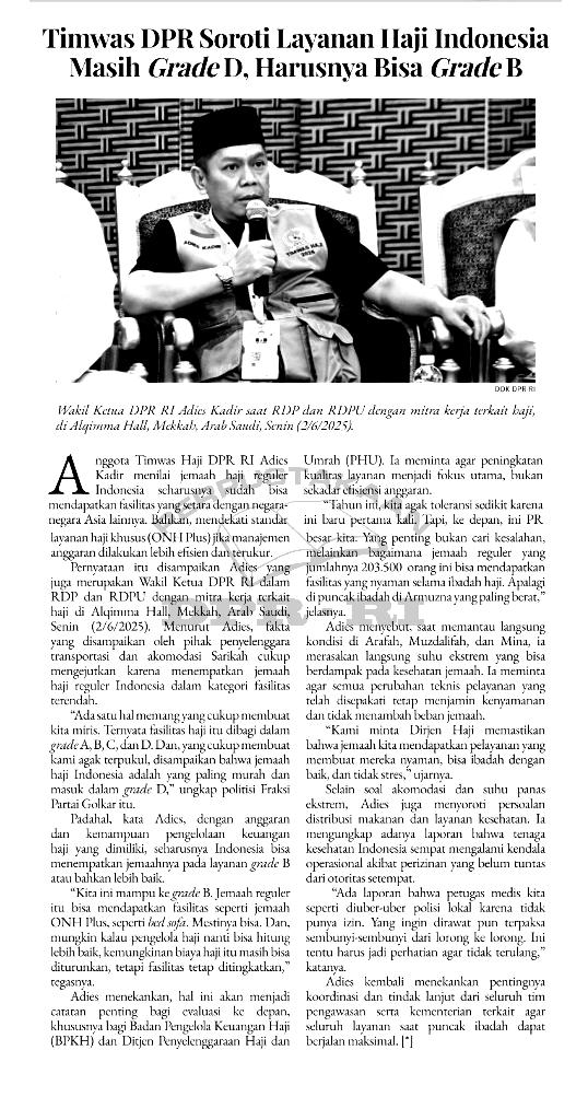 | Judul | Timwas DPR soroti layanan haji Indonesia masih grade D, harusnya bisa grade B |