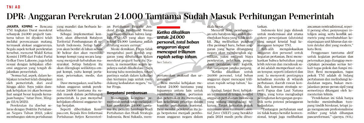 | Judul | DPR: anggaran perekrutan 24.000 tamtama sudah masuk perhitungan pemerintah |