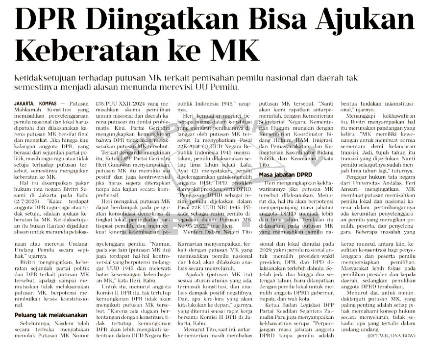 | Judul | DPR diingatkan bisa ajukan keberatan ke MK |
