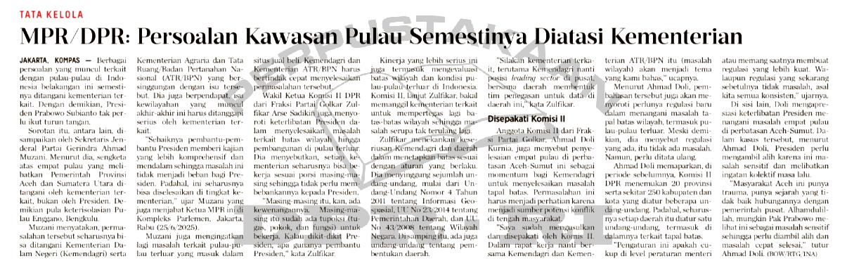 | Judul | MPR/DPR: persoalan kawasan pulau semestinya diatasi kementerian |