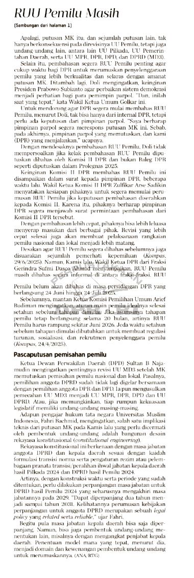 | Judul | RUU Pemilu masih menanti putusan politik |