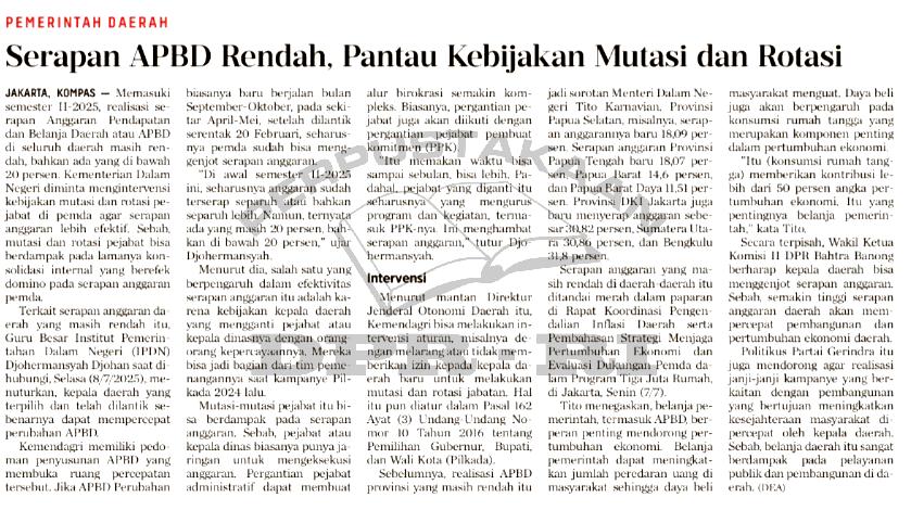 Serapan APBD rendah, pantau kebijakan mutasi dan rotasi
