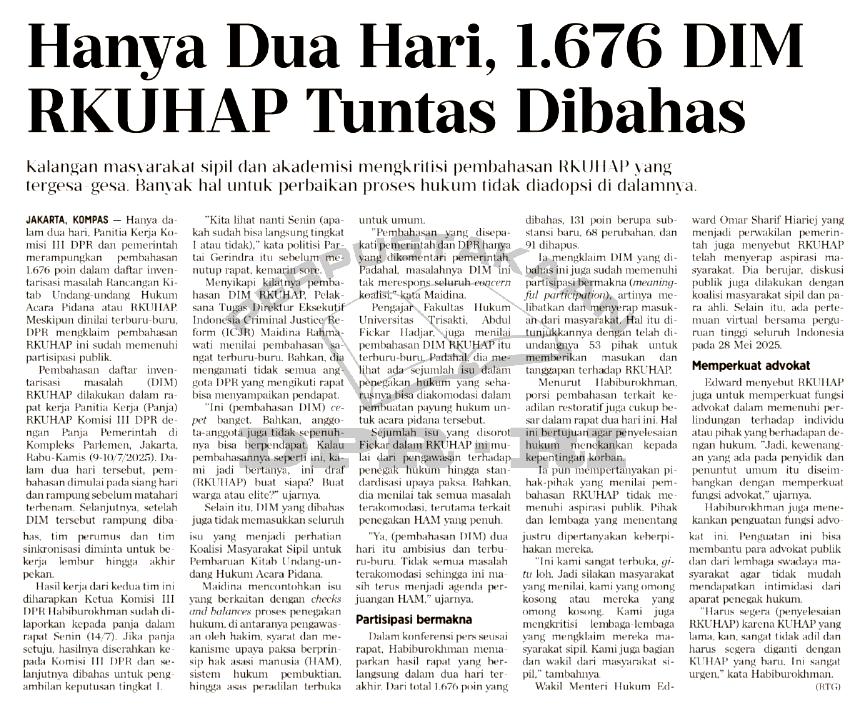 | Judul | Hanya dua hari, 1.676 DIM RKUHAP tuntas dibahas |