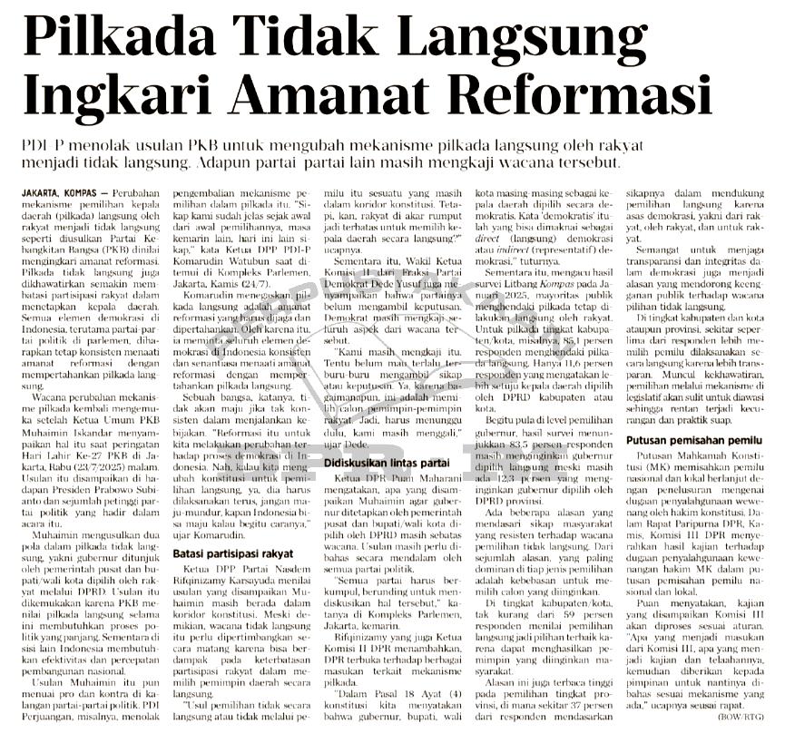 | Judul | Pilkada tidak langsung ingkari amanat reformasi |