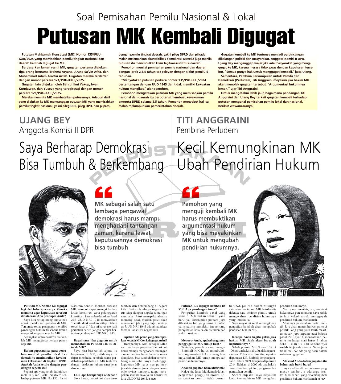 | Judul | Soal pemisahan pemilu nasional & lokal, putusan MK kembali digugat |