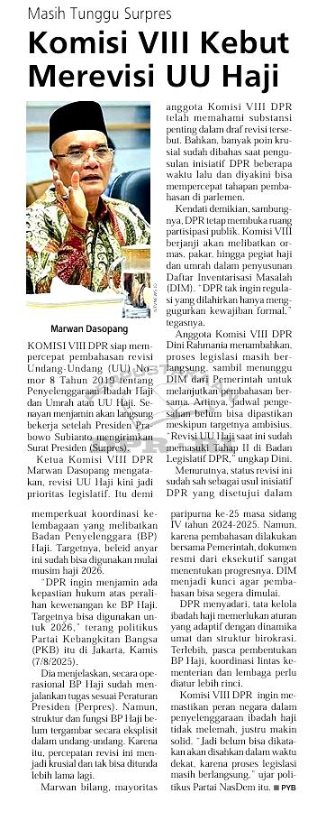 | Judul | Masih tunggu Surpres, Komisi VIII kebut merevisi UU Haji |
