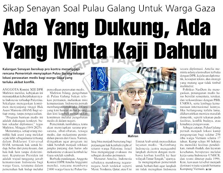 | Judul | Sikap senayan soal Pulau Galang untuk warga Gaza, ada yang dukung, ada yang minta kaji dulu |