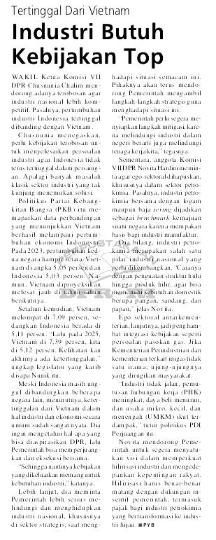 | Judul | Industri Butuh Kebijakannya Top: Tertinggal dari Vietnam |