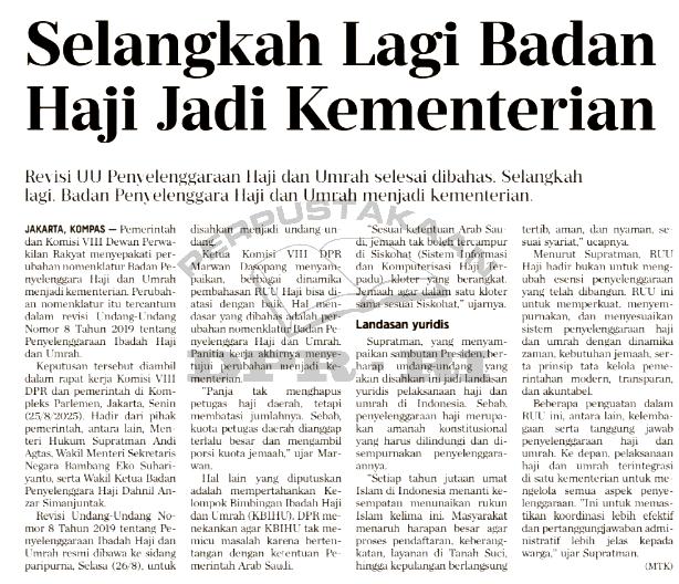 | Judul | Selangkah lagi badan haji jadi kementerian |