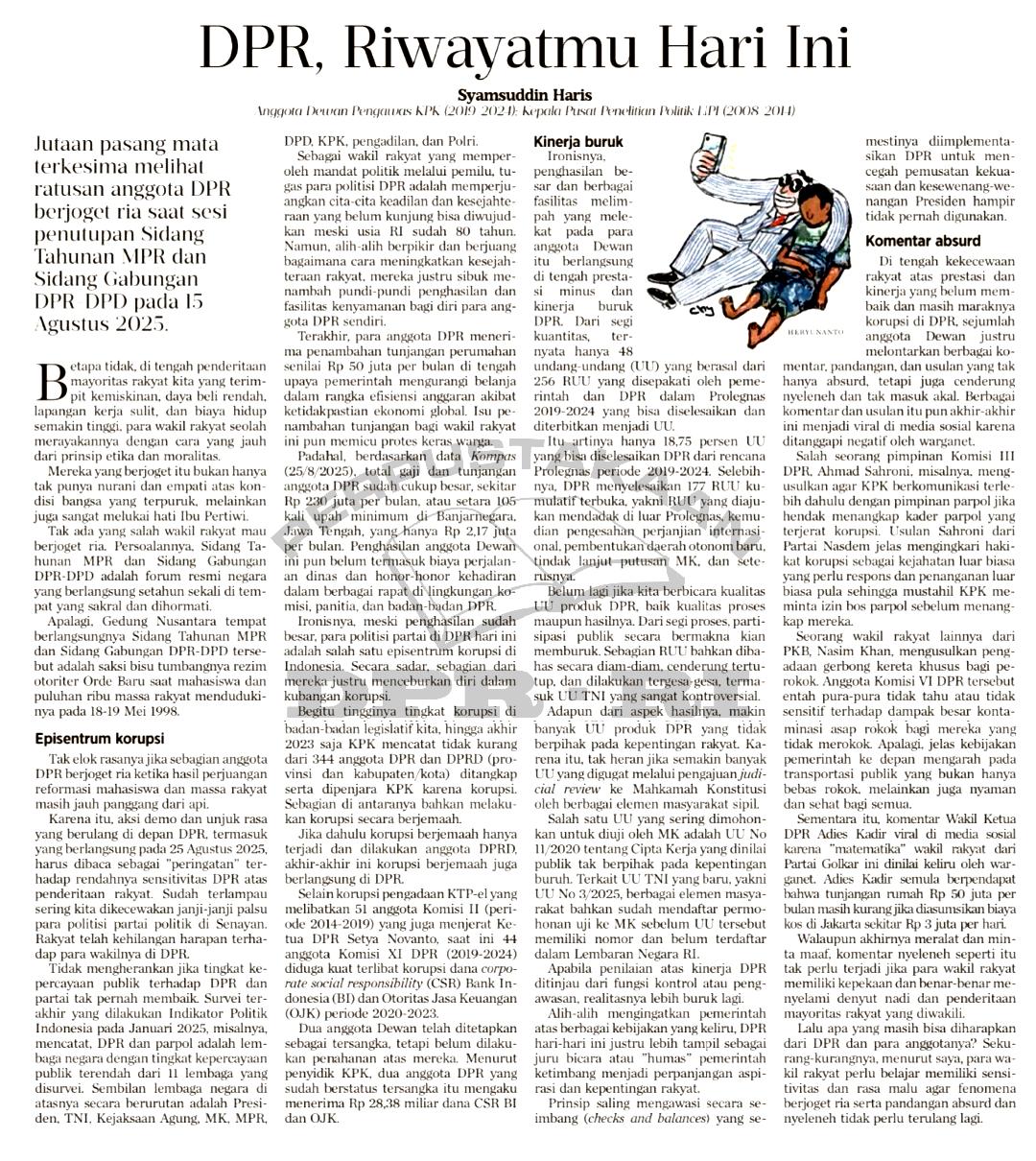 | Kata Kunci | kemiskinan,daya beli rendah,biaya hidup,tinggi,prinsip,etika,moralitas,kualitas,proses,partisipasi,publik,kinerja,Ahmad Saroni,Nasim Khan,KPK,partai politik,asap,rokok |