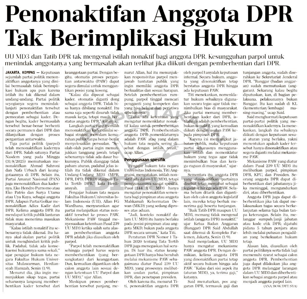 | Judul | Penonaktifan Anggota DPR tak berimplikasi hukum |